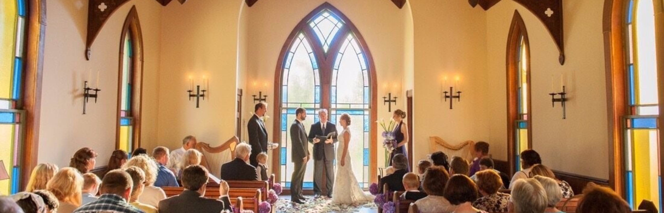 Package includes option for an officiant, wedding cake, photographer, flowers, dj.