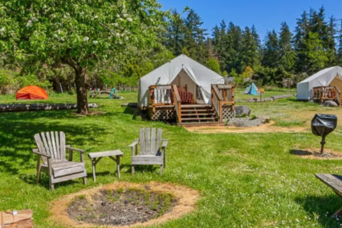 We are a private campground on the sunny west side of Orcas Island. Home to spectacular sunsets, marine activities, and family fun since 1938. Campsites range from open and sunny to more private walk-in sites. Ocean view and non-view RV sites with power and water only. Or try our Deluxe Tent Cabins and leave the hassle of setting up your gear to us! These units come complete with a queen bed, futon, linens/towels, dining table and chairs, patio area with flower boxes, and an outdoor grill. Bring the kids on a camping getaway and take part in our famous daily summer kids' activities!