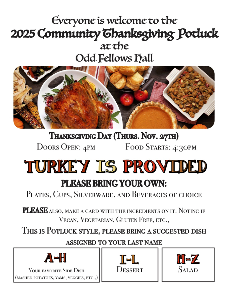 Orcas Island Community Thanksgiving Potluck Meal at the Odd Fellows Hall.