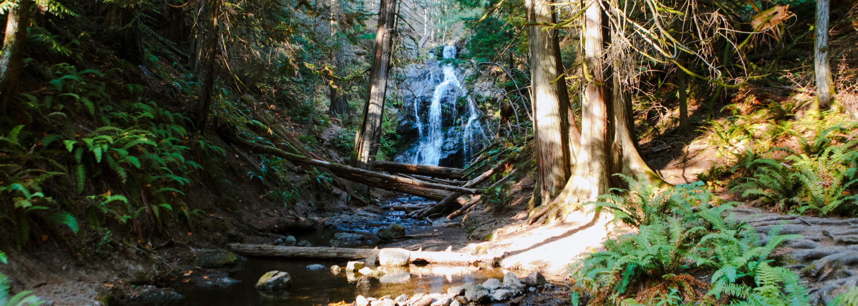 Cascade falls is a 40-foot waterfall and the perfect reward after a 420 foot elevation gain. On your way to the largest waterfall in the San Juan Islands, you'll pass two other falls and follow Cascade Creek through a dense forest.
